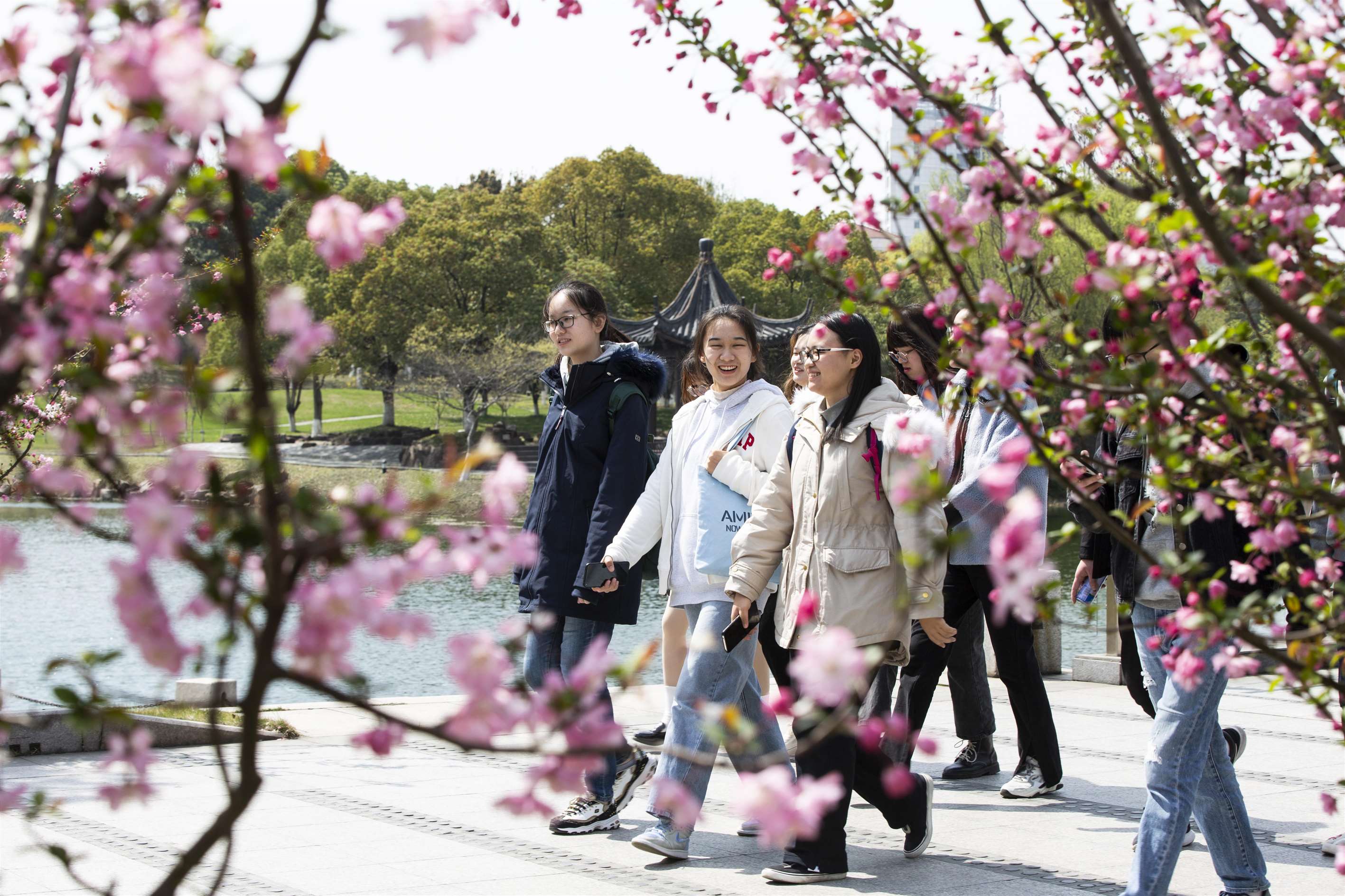 在春風的親吻下羞紅了臉頰,